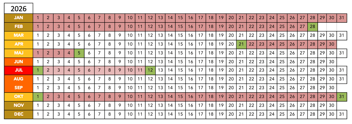 Avgår 35% av hyra vid minst 28 nätter, samt el tillkommer.