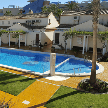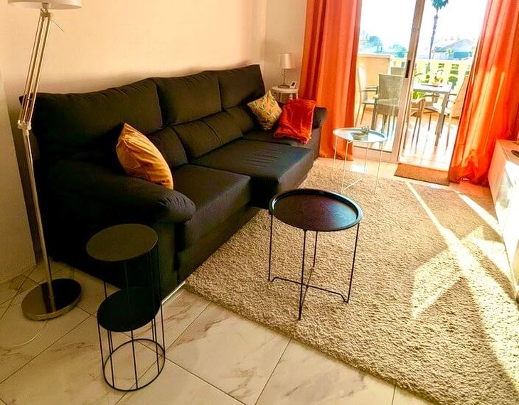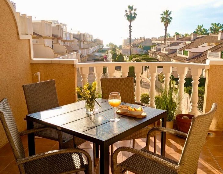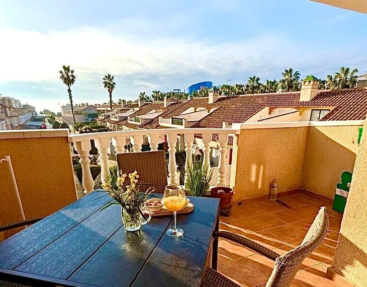 Pool i communityn och på taket finns en stor solterrass. Läget är optimalt och man har 4-5 minuter till strand, restauranger, mataffärer, strandpromenad och till och med det stora shoppingcentret med många restauranger, Zenia Boulevard på gångavstånd. Alltså nära till allt man behöver för en optimal semester och området lever under hela året. Den rejäla balkongen med sköna möbler ligger mot havet, med sol från tidig morgon och så gott som hela dagen. Varje torsdag kommer marknaden till området med nyskördade grönsaker och frukter. Det finns även en bäddsoffa. Lägenheten ligger på plan 2, det finns hiss och avgiftsfri parkering på gatan. Gillar ni att bo vid havet kommer ni att stortrivas här.