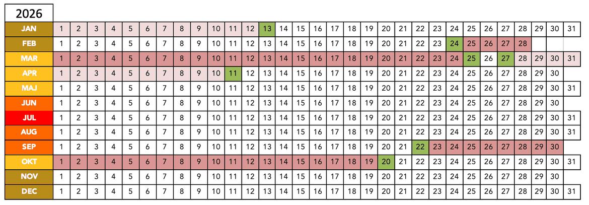 Avgår 34% av hyra vid minst 28 nätter, samt el tillkommer.