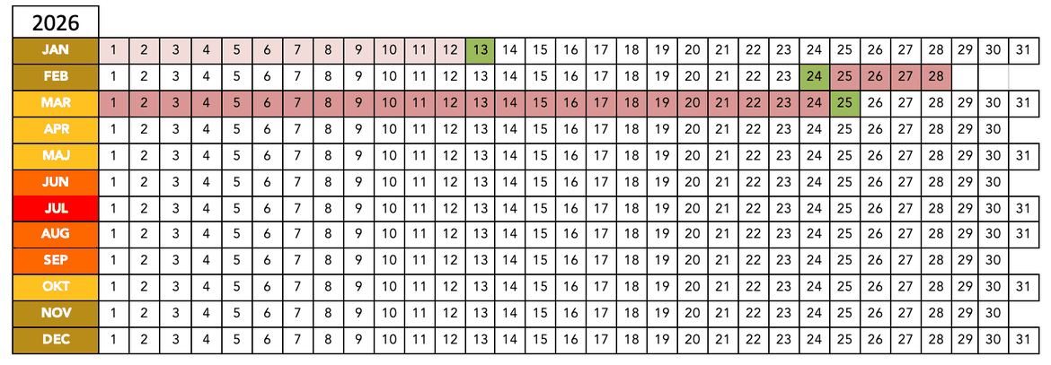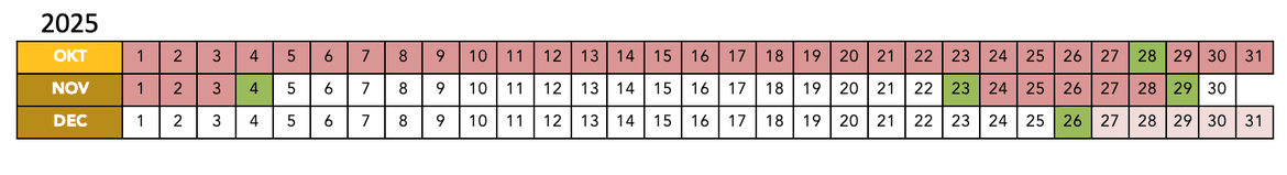 Avgår 25% av hyra vid minst 28 nätter, samt el ingår.