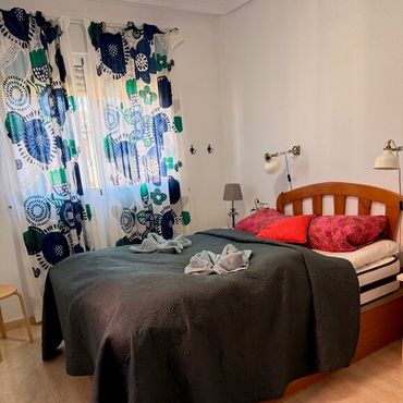 Välkommen till vårt trevåningshus i Cabo Roig. Huset består av kök, vardagsrum och tre sovrum. På nedervåningen finns kök, vardagsrum och ett badrum, på andra våningen finns två sovrum och ett badrum och på tredje våningen finns ett sovrum och takterrass. Det stora sovrummet har en dubbelsäng medan de två andra sovrummen har två enkelsängar. Soffan i vardagsrummet går att bädda ut till två sovplatser till ifall det skulle behövas.