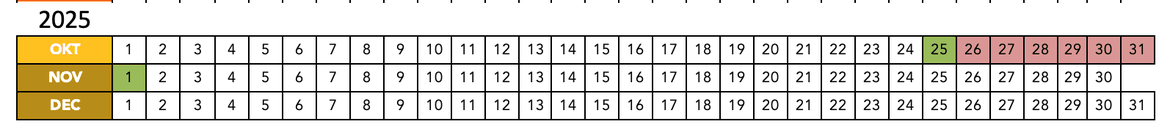 Grön – Möjlig ankomst- och avresedag.