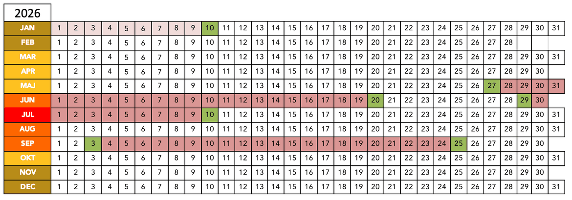 Grön – Möjlig ankoms- och avresedag.